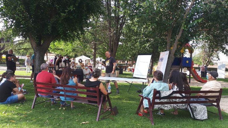 Un año más, gracias a la colaboración del Ayuntamiento de Nieva, el apoyo en la gestión de ISMUR y Colectivos de Acción Solidaria y la financiación del Ministerio de Derechos Sociales y Agenda 2030, Escuelas Campesinas de Segovia llevó a cabo su III Feria-Mercado de Iniciativas Sostenibles. Se dieron cita más de una docena de artesanos y productores de alimentos que con su trabajo enriquecen nuestros recursos locales y diversifican las economías en el territorio. Labores innovadoras para trabajar con nuevos y viejos materiales, técnicas más respetuosas con los animales y la tierra para recoger y elaborar alimentos más sostenibles y saludables, todos tuvieron un espacio en el parque de Nieva para exponer y vender sus productos. Tras la bienvenida y pequeña introducción a la biomímesis a cargo de Alfonso Pescador, se llevaron a cabo tres ponencias que informaron sobre la importancia de las construcciones sostenibles, cómo los edificios y residencias interaccionan con su entorno y nuestra salud. Los secretos para hacer las viviendas más amigables, cómo integrarlas en su entorno, cómo conseguir que su construcción se convierta en un impacto positivo en el entorno, los proporcionaron Ana Gordillo y Luis Pastor, en dos intervenciones que expusieron parte de su trabajo al frente de Bioconstruible. Por la tarde Alberto Vigil, expuso la gran oportunidad que ofrecen las nuevas normativas de construcción para rehabilitar viviendas, especialmente para los municipios de menos de 5000 habitantes que contarán con ayudas e incentivos para reconstruir sus áreas urbanas. De forma simultánea varios talleres para conocer el comportamiento de diversos materiales como la cerámica, el vidrio, la madera o las resinas naturales y sus posibilidades para integrarlas en la construcción sostenible fueron expuestos por los maestros artesanos Carmen Pardo, Daniel Cobos, Toly Mateo y Mónica Gómez Candela. Un taller especial para conocer un poco más el tratamiento necesario a realizar sobre algunos materiales reciclados potenciales materias primas para la elaboración de otras estructuras vino de la mano de las expertas en reciclaje Marta Núñez-Cacho y Raquel Jacoste. Este próximo sábado 4 de septiembre, el proyecto Gente y Tierra colabora con el mercado ecológico que UCCL-Segovia celebra todos los primeros sábados de cada mes en la Plza. Del Doctor Laguna, se dispondrá de un espacio con información del programa y sobre cómo participar en él.