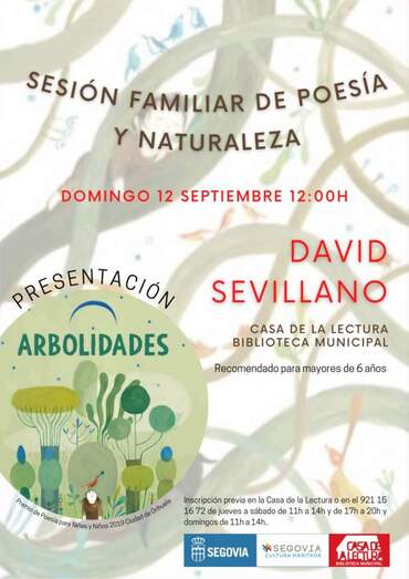 DOMINGO 12, 12:00H. POESÍA EN FAMILIA. ARBOLIDADES con David Sevillano. Presentación del libro de poesía infantil Arbolidades  (XII Premio Orihuela), un libro nacido en mitad de la primera ola de la COVID.35 poemas con ilustraciones hermosas que nos trasladan a la naturaleza.