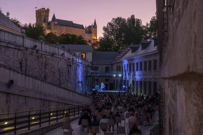 La Real Casa de Moneda era todo un ejemplo. En uno de sus patios, con el Alcázar al fondo, el público que llenó el aforo previsto, disfrutaba de la danza contemporánea de Andrés & Jon Maya y su espectáculo “Yarin work in progress”, un diálogo musical entre la voz, la percusión y la danza de los dos bailarines, un viaje de investigación hacia diferentes lenguajes coreográficos y rítmicos.