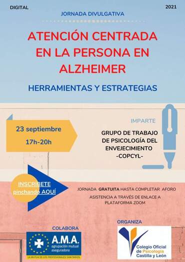 El Colegio Oficial de Psicología de Castilla y León (COPCYL) continúa con su apuesta por la formación especializada con la celebración de la jornada online ‘Atención centrada en la persona en Alzheimer’ el jueves 23 de septiembre a las 17 horas. El curso, enmarcado en la celebración del Día Mundial del Alzheimer _21 de septiembre_, está dirigido tanto a los cuidadores de pacientes que presentan esta patología, que afecta a más de 100.000 personas en Castilla y León, como a familiares y todos aquellos interesados en el tema. El objetivo del grupo de trabajo de ‘Psicología del envejecimiento’ del COPCYL, organizador de la cita, es ofrecer además herramientas y estrategias de actuación para atender a los pacientes poniendo el foco en su historia de vida y su personalidad.