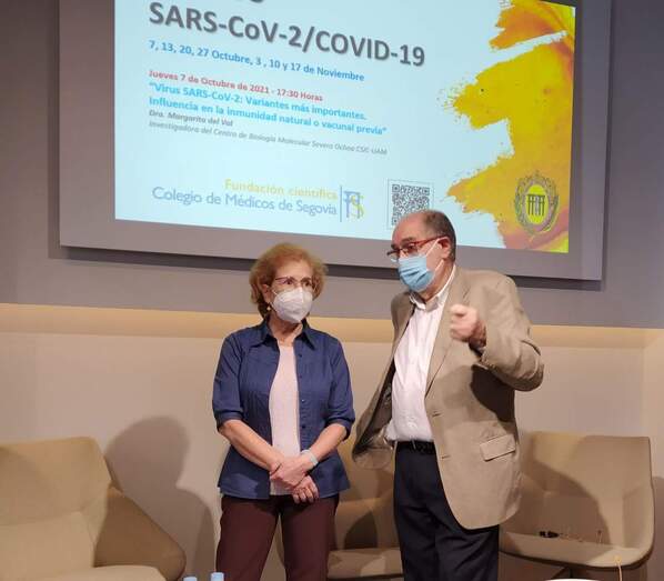 La investigadora del Centro de Biología Molecular Severo Ochoa CSIC-UAM, Margarita del Val, ofreció la conferencia inaugural del II curso del SARS CoV-2 que promueve la Fundación Científica del Colegio de Médicos dentro de su programa de Formación Continuada. “Virus SARS-CoV-2: Variantes más importantes. Influencia en la inmunidad natural o vacunal previa”, era el título de la ponencia de esta científica, una de las mayores expertas a nivel nacional de estos temas.