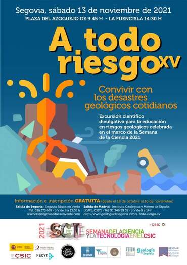 Esta vez la excursión “A todo riesgo XV” se incluirá tanto en la Semana de la Ciencia de Castilla y León, que coordinan la Consejería de Educación de la Junta de Castilla y León, la Fundación Universidades y Enseñanzas Superiores de Castilla y León, y el Parque Científico de la Universidad de Valladolid, como en la Semana de la Ciencia de la Comunidad de Madrid a través de la Semana de la Ciencia y la Tecnología del CSIC 2021.