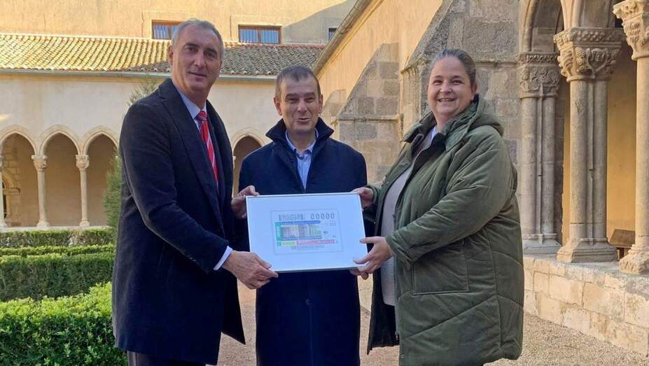El delegado territorial de la Junta, José Mazarías, y el director de ONCE en Segovia, Claudio Congosto, han presentado esta mañana en Santa María la Real de Nieva el cupón dedicado al Camino de Santiago de Madrid a su paso por este municipio segoviano. La alcaldesa de la localidad, Pilar Ares de Blas, también ha estado presente en el acto que se ha celebrado en el Claustro del Monasterio de Santa María la Real de Nieva, monumento que ilustra dicho cupón. El boleto corresponde a la serie de los ‘Caminos a Santiago por Castilla y León’, una iniciativa de colaboración entre la Consejería de Cultura y Turismo de la Junta de Castilla y León y la ONCE para promocionar el Camino de Santiago en este Año Jacobeo 21-22, que persigue difundir las etapas del Camino por tierras de Castilla y León, con nueve cupones, uno por cada provincia de la Comunidad Autónoma.