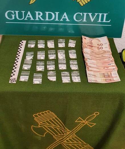 La Guardia Civil de Segovia ha detenido a dos hombres como presuntos autores de un delito contra la salud pública, en su modalidad de tráfico de drogas, al ser interceptados con 20 papelinas de cocaína en el término municipal de El Espinar.