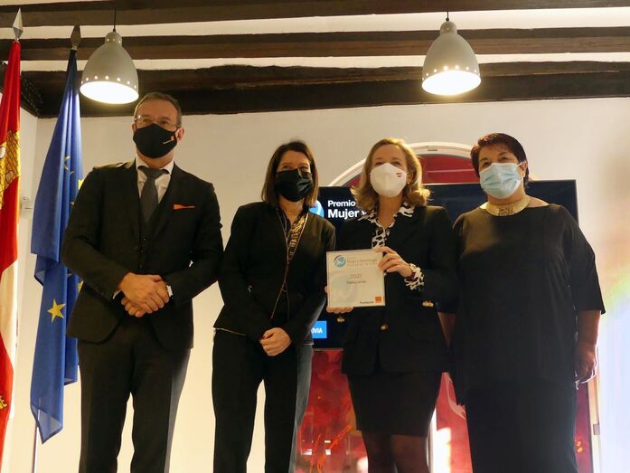 Los encargados de hacer entrega de esta distinción a Nadia Calviño han sido Clara Luquero, alcaldesa de Segovia, y Jean-François Fallacher, consejero delegado de Orange España.