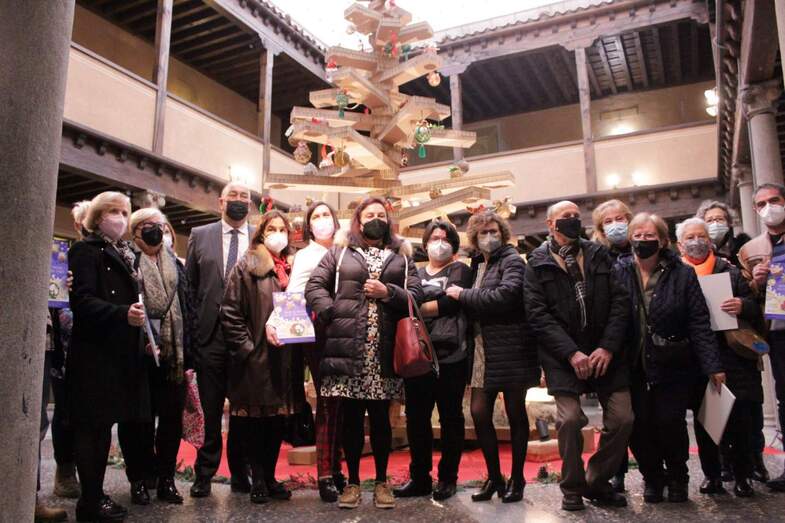 Por su parte, Miguel Ángel de Vicente celebraba la participación de noventa grupos de las diferentes Aulas de Manualidades de la provincia e incluso comentaba que dos trabajos, del cerca de un centenar recibidos, habían sido descartados por no cumplir las bases, al no pertenecer a estas Aulas de participación comunitaria promovidas desde el Área de Asuntos Sociales de la Diputación. Todos estos trabajos lucen desde hace unos días, y lo harán hasta el final de la Navidad, en el árbol elaborado de cartón de nido de abeja que, al igual que ya lo hiciera en 2020, preside con sus cinco metros de altura el patio de Columnas del Palacio Provincial. Bajo las cuarenta y dos ramas del mismo, de entre 35 cm y 215 cm de longitud, Miguel Ángel de Vicente felicitaba las fiestas navideñas a todos los asistentes a la entrega de premios y les deseaba un próspero año 2022 esperando “que todos esos sueños que, como indica el título del concurso, reúnen estas noventa bolas de Navidad, se cumplan y dentro de un año podamos contarlos o verlos reflejados en vuestros futuros trabajos”.