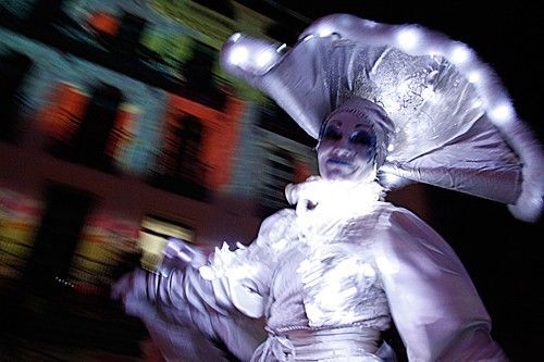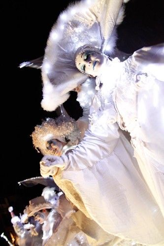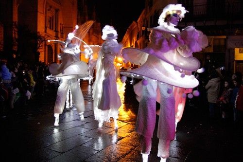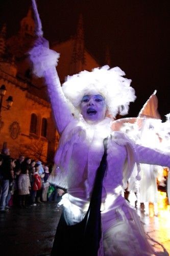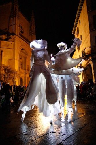 A las 18:30 horas de la tarde comenzó la Cabalgata, que discurrió desde el Alcázar hasta el Azoquejo, por la calle de San Juan, con la compañía gala de zancos Mademoiselle Paillette y su espectáculo 'Les Ombres Blanches' (Las sombras blancas), que han ofrecido una actuación etérea y onírica.