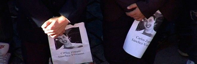El silencio y la tristeza lo inundaron todo en una concentración de repulsa a la que han asistido varios cientos de personas entre autoridades, vecinos y, de manera muy significativa, los compañeros de instituto de Carlos, que hoy no han tenido clase normal en el IES Peñalara de La Granja. Los chavales, visiblemente afectados, portaban cartulinas, fotos y camisetas en recuerdo de Carlos, al que llamaban cariñosamente ‘Zapa’.