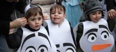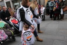 Desde ambos lados de la Calle Real, los niños sin comparsa y con disfraz independiente, entre los que este año no hubo un claro vencedor, observaban cómo, por el centro, iban pasando juegos de mesa, con los dados incluidos, instrumentos, frutas de todos los sabores y colores, civilizaciones imperiales, Olafs quitando protagonismo a sus compañeras de reparto en 'Frozen', todos los habitantes del bosque encantado, los ya citados fieles del lado oscuro, el costurero loco y todos sus minúsculos y coloridos botones e, incluso, Amadeus Mozart con todas sus composiciones. También había comparsas con la merienda preparada, como la que había elegido ser quesito de La Vaca que Ríe, y otras capaces de hacer el indio hasta la Plaza Mayor, donde algún conductor despistado o impaciente obligaba a parar momentáneamente el avance del desfile para poder escapar de un recinto que esperaba a sus invitados con un rico chocolate caliente.