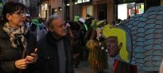 La universal sardina habría sido la auténtica protagonista de la tarde en la hoguera, si no llega a ser porque el pez gordo con cara de Trump que cerraba el desfile, ya se había encargado de hacer las delicias y las carcajadas de aquel que lo veía pasar por la Calle Real a ritmo de la música de 'La Sirenita', y no podía evitar hacerse una foto con el pescadilla americano mientras sonaba eso de "la vida de nuestros peces muy larga no suele ser, si al dueño le apetece a mí me van a comer". Ya en la Plaza, y mientras dos componentes de la comparsa Semifusa hacían entrega a los bomberos de tan valiosa pieza, al compás de un "tiriquitrump trump trump, tiriquitrump trump, trump", los estudiantes extranjeros asomados a los balcones de uno de los edificios ponían cara de asombro, y diversión a la par, sin dejar de inmortalizar el mortal momento.
