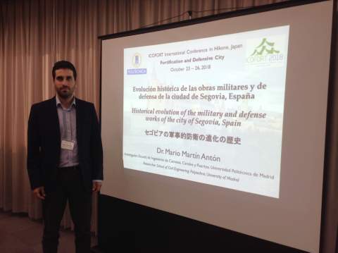 [Img #49258]"En octubre fui a la ciudad de Hikone (Japón) a un congreso de ICOFORT (Comité científico internacional de fortificaciones y patrimonio militar), un organismo de ICOMOS (Consejo Internacional de Monumentos y Sitios). Allí realicé, el día de San Frutos, una ponencia sobre Segovia con el título "Evolución histórica de las obras militares y de defensa de la ciudad de Segovia, España" además de presentar el artículo para el libro de actas del congreso y participar en la exposición de pósters sobre "Castillos del Mundo", donde además expuse una maqueta del Alcázar que compré en una tienda de souvenirs. Actualmente el póster y la maqueta se encuentran en el departamento de español de la Universidad de Estudios Extranjeros de Kobe, donde la segoviana Montserrat Sanz Yagüe es catedrática. Para la elaboración del artículo y la presentación quería agradecer su ayuda a mi hermano Guillermo, a Antonio Ruiz Hernando y Manuel Marcos Ramón, así como las fotos de Turismo de Segovia.