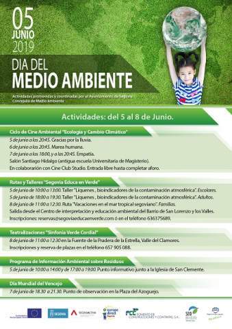 Este 5 de junio se conmemora el Día Mundial del Medio Ambiente, bajo el lema Unidos por un Planeta sin contaminación del aire. La ciudad de Segovia se suma una año más a esta celebración con un programa de actividades propuestas por la concejalía de Medio Ambiente en colaboración con el centro de información Europa Direct.