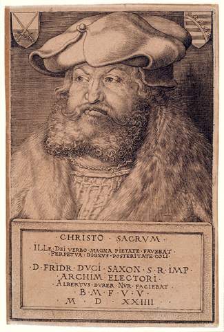 Invitado por Maximiliano I, Durero se involucró en dos gigantescos proyectos, el “Arco de Triunfo” y el “Cortejo Triunfal”, encargo, este último que quedaría sin terminar a la muerte del soberano en 1519, habiéndose finalizado únicamente el “Carro triunfal” del cortejo, que Durero publicó en 1522 y que está integrado en la muestra. Durante este periodo, el artista creó también un nuevo género, el retrato grabado, del que se muestran emblemáticos ejemplos de los que fueron amigos y mecenas del artista, tales como Willibald Pirckheimer, el Elector de Sajonia Federico el Sabio o el Cardenal Alberto de Brandenburgo.