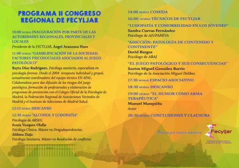 La Federación Castellano y Leonesa de Jugadores de Azar Rehabilitados, FECYLJAR, abre el periodo de inscripción del II Congreso Regional que se celebrará en el Teatro Juan Bravo de Segovia el próximo 14 de marzo y que se centrará en la ‘Ludopatía y Comorbilidad’.