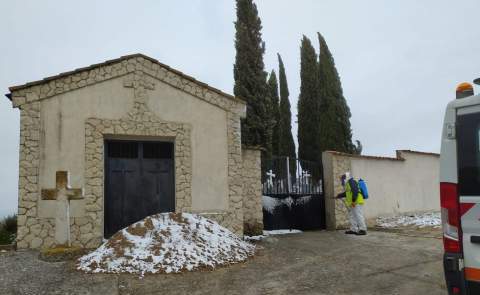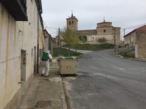 Los equipos de la Diputación han empleado ya cerca de 60.000 litros de solución para desinfectar los sitios públicos en los pueblos de la provincia