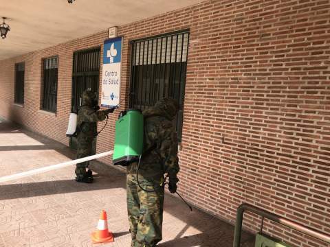 El domingo 12 de abril, se realizaron tareas de descontaminación en el Centro de Salud de Nava de la Asunción (Segovia) y en el Centro Penitenciario de Segovia en Torredondo (Segovia), en este último en colaboración con personal de la Brigada Paracaidista.