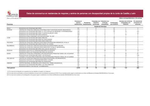 Situación epidemiológica del coronavirus (COVID-19) en Castilla y León (Actualización diaria. Datos a 20/04/2020)