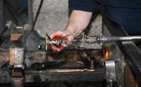 Gracias a la destreza de los maestros sopladores, la fabricación artesanal actual se mantiene fiel a la producción tradicional de la Real Fábrica de Cristales de La Granja.