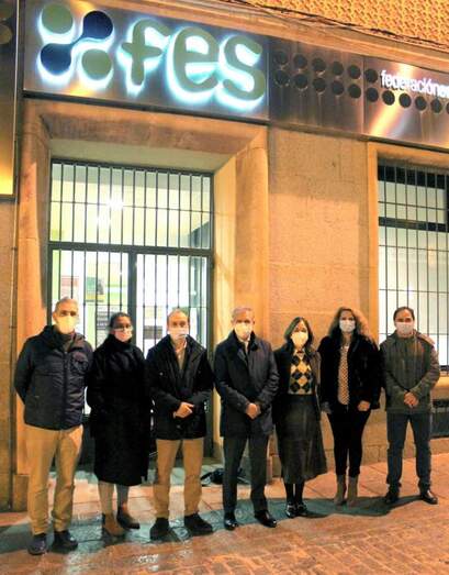 - Se adjunta fotografía. De izquierda a derecha: Rubén Salamanca (CIT Cuéllar); Araceli Herranz (DeCalles); Roberto Manso (Comerzio José Zorrilla); Andrés Ortega y Beatriz Escudero (presidente y secretaria general de FES); Maite Muñoz (San Rafael); y Alberto García (CAS).