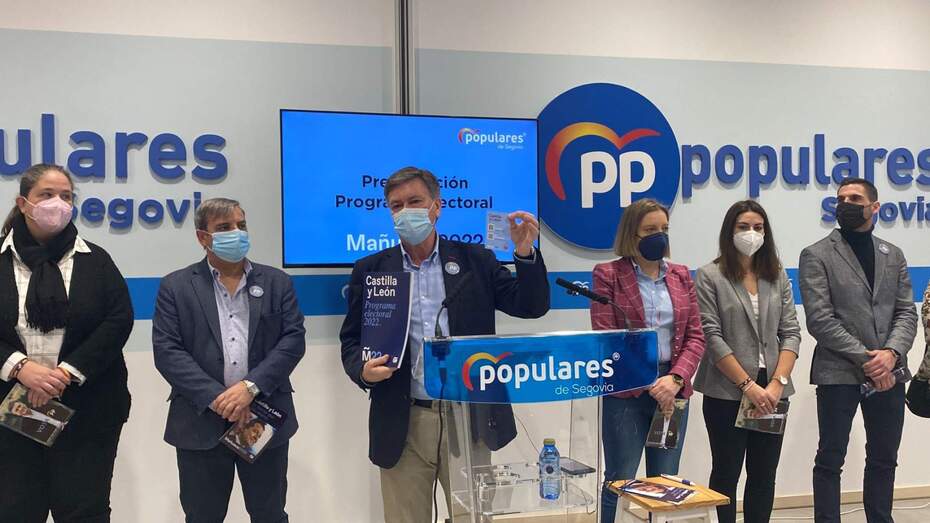Los candidatos del Partido Popular de Segovia, Francisco Vázquez, José Luis Sanz Merino, Mª Ángeles García, Elena Rincón, Javier Carpio y Pilar Ares, junto con los suplentes, Carlos Fuentes, Margarita Meroño y Daniel Sacristán, han presentado en la mañana de hoy el programa con el que concurren a las elecciones del próximo 13 de febrero.