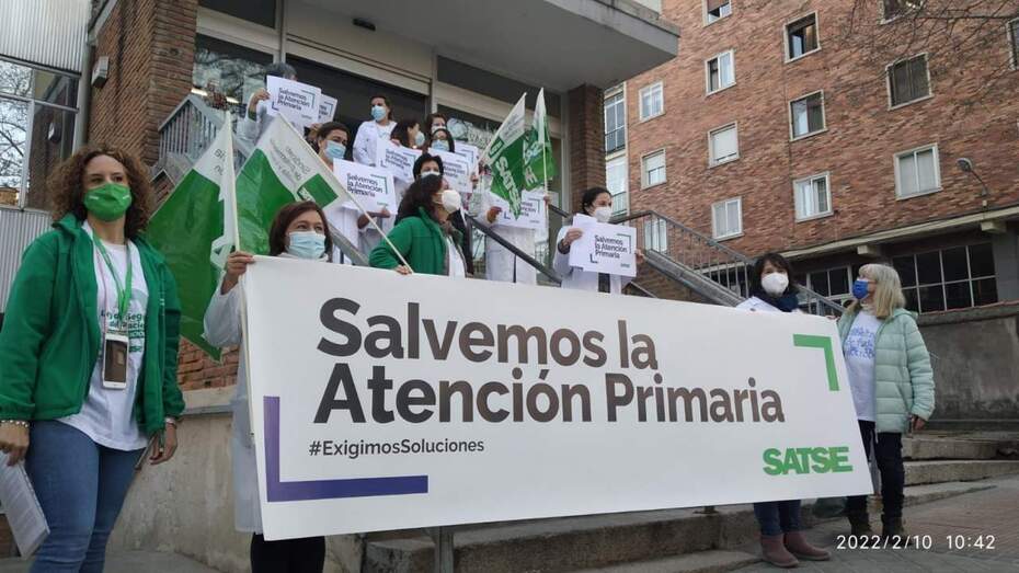 Enfermeras, enfermeros y fisioterapeutas se han concentrado hoy, jueves, en los centros de salud de Segovia para denunciar la grave situación de deterioro y precariedad que sufre la Atención Primaria y exigir a la Consejería de Sanidad de Castilla y León que no la abandone “a su suerte” y mejore la atención sanitaria y cuidados que recibe el conjunto de la ciudadanía. Con pancartas en las que se podía leer “Salvemos la Atención Primaria”, las enfermeras, enfermeros y fisioterapeutas convocados por el Sindicato de Enfermería, SATSE, han mostrado su profundo malestar porque, después de dos años de lucha contra la pandemia y haber escuchado muchos compromisos por parte de los responsables públicos y políticos, la situación que sufren a diario es de una crónica escasez de medios y recursos mientras la sobrecarga y tensión asistencial es cada vez mayor. Aclaraban, “No nos han dejado otra alternativa que salir a la calle y protestar públicamente para defender a nuestra sanidad y a nuestros pacientes. Sentimos rabia e impotencia al ver lo poco que les importamos”, afirmaban. En el transcurso de las concentraciones se ha denunciado la cada vez mayor saturación que sufren los centros de salud de Segovia, el aumento de las esperas para ser atendido de manera presencial, el poco tiempo que disponen para atender y cuidar como se merece a cada persona o la supresión paulatina de programas de prevención y promoción de la salud, así como de hábitos de vida saludable. “Nos encontramos en una situación crítica en los centros de salud, en los que una enfermera o enfermero tiene hasta 2.000 personas asignadas, mientras que en muchos de ellos no hay ni un solo fisioterapeuta. ¿Cómo quieren que con estas condiciones ofrezcamos una atención sanitaria y unos cuidados seguros y de calidad?”, aseveraban Asimismo, los profesionales sanitarios concentrados en sus centros de salud han subrayado que se encuentran totalmente exhaustos después de dos años de incansable lucha contra la pandemia del Covid-19, además de haberse visto afectada su salud física, psicológica y emocional a unos niveles que aún no son capaces de concretar. Una sensación de desanimo y cansancio que se une a la de frustración y rabia por haber constatado que, una vez superado lo peor de la pandemia, gobiernos y partidos políticos mantienen su política de no priorizar la sanidad pública, por lo que no destinan los recursos y medios necesarios para reforzar y mejorar este nivel asistencial. “Están condenando a la Atención Primaria a un progresivo deterioro que puede llevarle de manera irremediable a una muerte lenta, pero segura, salvo que la administración actúe con urgencia y contundencia para resolver esta situación”, añaden. Los profesionales sanitarios concentrados también han aprovechado para exigir otros asuntos fundamentales para el colectivo y el conjunto de la ciudadanía, como el desbloqueo en la tramitación parlamentaria de la Ley de Seguridad del Paciente, que se posibilite la jubilación anticipada voluntaria y que se permita la reclasificación profesional en el grupo A, sin subgrupos, además de acabar con la temporalidad y precariedad laboral que vienen sufriendo desde hace años. La celebración de concentraciones en los centros de salud de ha supuesto el inicio de la nueva estrategia de acciones reivindicativas y movilizaciones que el Sindicato de Enfermería, SATSE, va a impulsar a lo largo de 2022 para denunciar el grave deterioro de nuestro sistema sanitario y reclamar mejoras en las condiciones profesionales y laborales de las enfermeras, enfermeros y fisioterapeutas de todo el Estado. En próximas fechas se celebrarán nuevas concentraciones en los hospitales de las distintas comunidades autónomas.