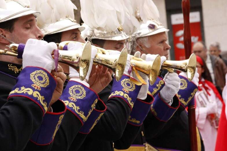 fiscorno, trompa, trombón y bombardino, en viento; así como tambores