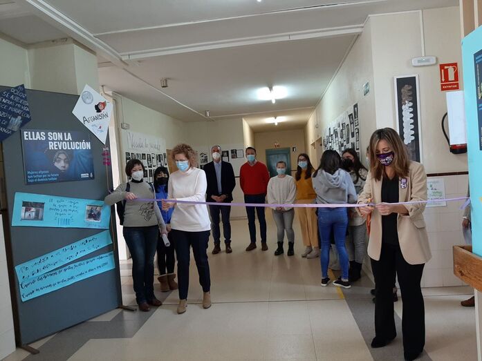 La subdelegada del Gobierno, Lirio Martín, ha asistido esta mañana a la inauguración de la exposición ‘Ellas son la revolución’ en el IES Giner de los Ríos.
