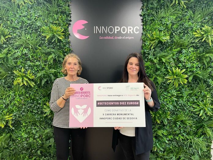 Hoy se ha realizado en las instalaciones de INNOPORC el acto de entrega a la Asociación de Alzheimer Segovia (AFA) de un cheque por valor de 710 euros, fruto de la iniciativa solidaria llevada a cabo en la Carrera Monumental INNOPORC Ciudad de Segovia. La empresa segoviana ha duplicado el importe de la recaudación obtenida con la donación de las inscripciones, tal y como se comprometió cuando se puso en marcha la acción.