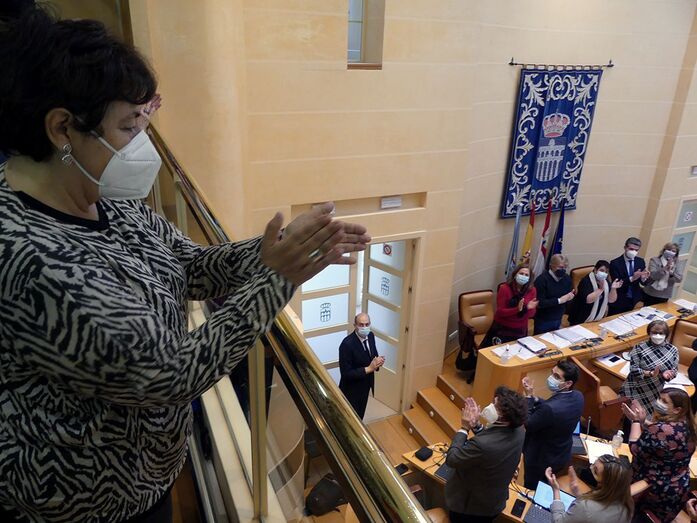En la tribuna ha asistido al acto Teresa Garrido, viuda de Alfredo Matesanz, que ya ostentaba el título de Hijo Predilecto de Segovia, acompañada de amigos de la familia y varios miembros de la directiva de la Asociación de Periodistas de Segovia (APS), encabezados por su presidente Miguel Ángel López, asociación promotora de la iniciativa.