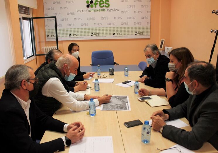 La sede de la Federación Empresarial Segoviana (FES) ha sido hoy escenario de una reunión de trabajo en relación a los proyectos que impulsa el Ayuntamiento de Segovia para la ampliación del Centro de Transportes. En el encuentro han participado la concejala de Urbanismo, Clara Martín, la secretaria general de FES, Beatriz Escudero, el presidente y gerente de la Agrupación Segoviana de Empresarios del Transporte (ASETRA), Juan Andrés Sáez Garrido y Fernando García, respectivamente; además del presidente de SEMUTRANSA, empresa concesionaria del Centro de Transportes, Miguel Ángel González, acompañado del gerente de la empresa, Alberto Dueñas.