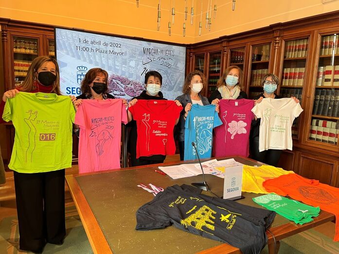 La Sala de la Biblioteca del Ayuntamiento ha sido hoy escenario de la presentación, en rueda de prensa, de la 14ª Marcha de Mujeres Segovia.