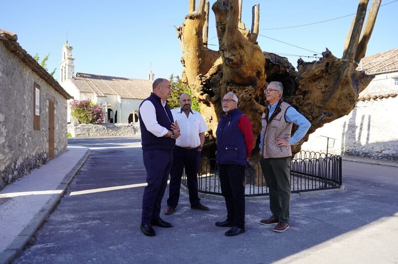 Ambos planes de ayudas son impulsados cada año desde el Área de Acción Territorial que dirige el diputado Basilio del Olmo, quien siempre acompaña al presidente en estas visitas por los municipios de la provincia y tiene ocasión así de informar sobre el terreno a De Vicente de la labor que lleva a cabo su Área en el territorio. Así, presidente y diputado, a quienes acompañaron otros miembros de la corporación provincial, pudieron interesarse por el estado de los caminos que los alcaldes de estos pueblos, Martín Ruano (Gomzeserracín), Francisco Javier Arranz (San Martín y Mudrián) y Tomás Merino (San Cristóbal de Cuéllar prevén arreglar por medio de estas ayudas concedidas que, en el caso de sus municipios, han sido de 3.000, 1.500 y 2.500 euros respectivamente y que, con una aportación idéntica por parte de los ayuntamientos, permitirán acometer obras en los entornos de estos pueblos durante los próximos meses, mejorando así la accesibilidad a los mismos y las vías de comunicación para la actividad agrícola y ganadera de la provincia. De ello daban cuenta precisamente los concejales de San Cristóbal de Cuéllar, Asier Jiménez y Víctor Sanz, quienes, en representación de su alcalde, ausente en la visita por motivos médicos, y junto al camino del Henar, mostraban a De Vicente sus planes para esa zona del pueblo.