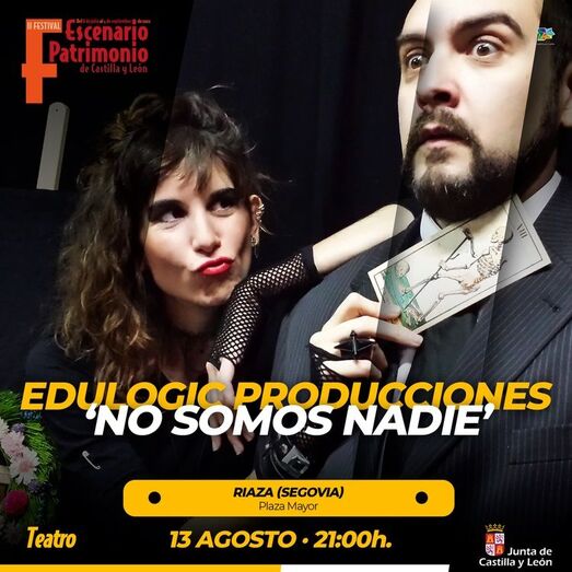 La programación de este mes de agosto en la provincia de Segovia comienza el próximo sábado, 13 de agosto, con la actuación de la compañía salmantina ‘Edulogic Producciones’, a las 21.00 horas, en la Plaza Mayor de Riaza. El grupo pondrá en escena la obra ‘No somos nadie’, una comedia en torno a las situaciones que pueden