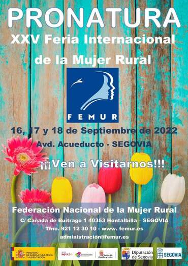 La Federación de Mujeres Rurales, FEMUR, organización pionera y referente en la defensa y promoción de las mujeres rurales, inaugura mañana, día 16 a las 18.00 horas en la Avenida del Acueducto (Segovia), la XXV edición de la Feria Internacional de la Mujer Rural, PRONATURA.