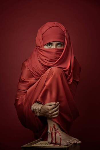 El cuerpo central de la muestra engloba 32 imágenes (y sus respectivos textos anexos o pies de foto) que han sido recreadas en distintos puntos de la geografía española, evocando desde una vertiente figurada el sufrimiento que causan las restricciones del régimen talibán.