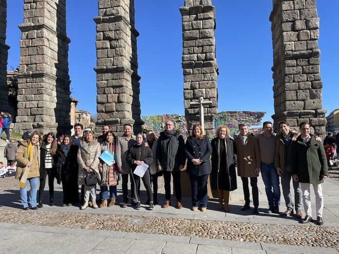 Alrededor de un millar de personas, entre escolares, profesores y padres vinculados a los tres centros escolares se han dado cita en el Azoguejo, donde los alumnos han leído un manifiesto en favor de la paz y protagonizado una performance para rechazar las guerras y cualquier tipo de violencia.