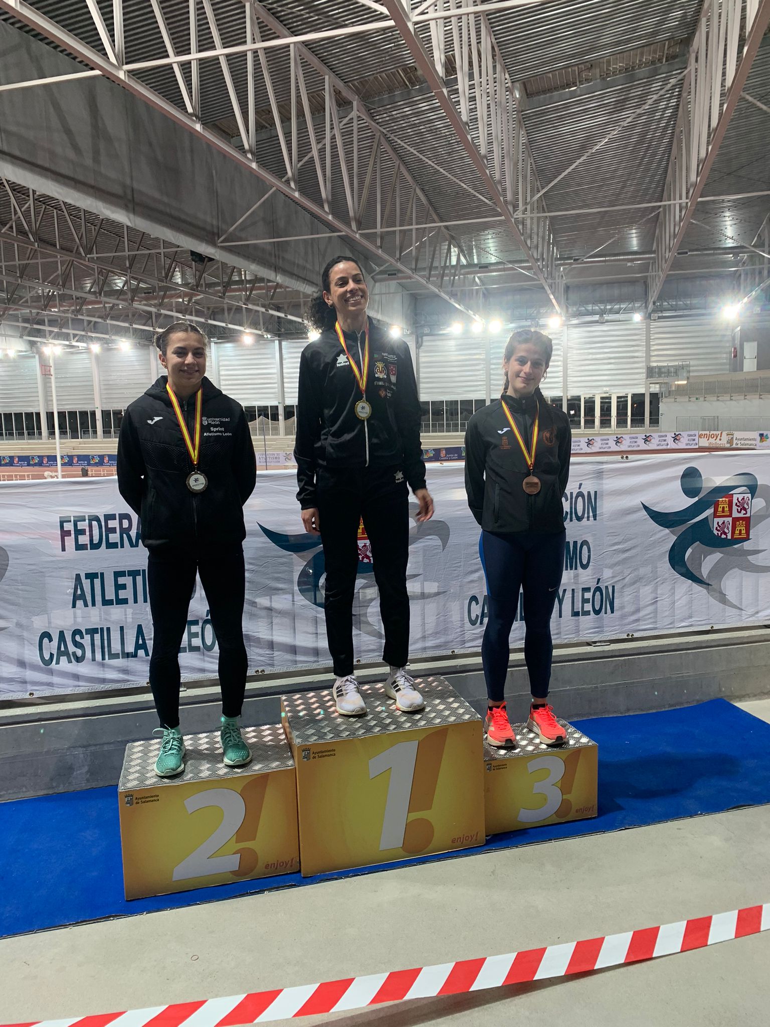 Excelente actuación de la atleta del Velox Atletismo, Eva Marqués Nicolás, en la prueba de los 400 m.l. del Campeonato Autonómico Absoluto en Pista Cubierta que se ha celebrado en Salamanca el 04 de febrero. Eva ha conseguido la medalla de bronce con un tiempo de 57.95, siendo este su primer año en la categoría senior.