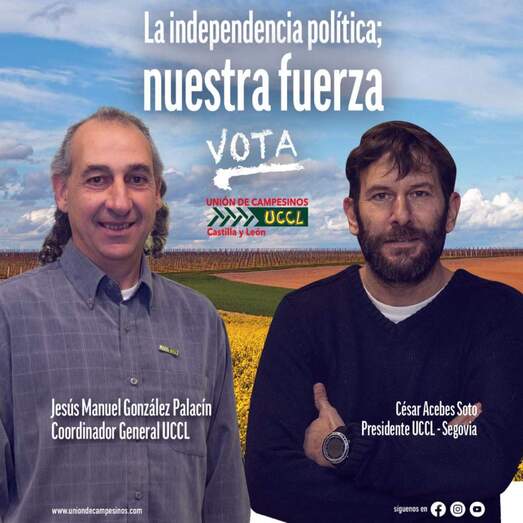 UCCL anima a agricultores y agricultoras, ganaderos y ganaderas a votar el domingo 12 de febrero para eliminar toda sombra de duda sobre la importancia vital del sector agropecuario de Segovia y de Castilla y León a la hora de producir alimentos de calidad y en cantidad suficiente para alimentar a la población, mantener unos pueblos con vida y un medio ambiente en condiciones adecuadas.