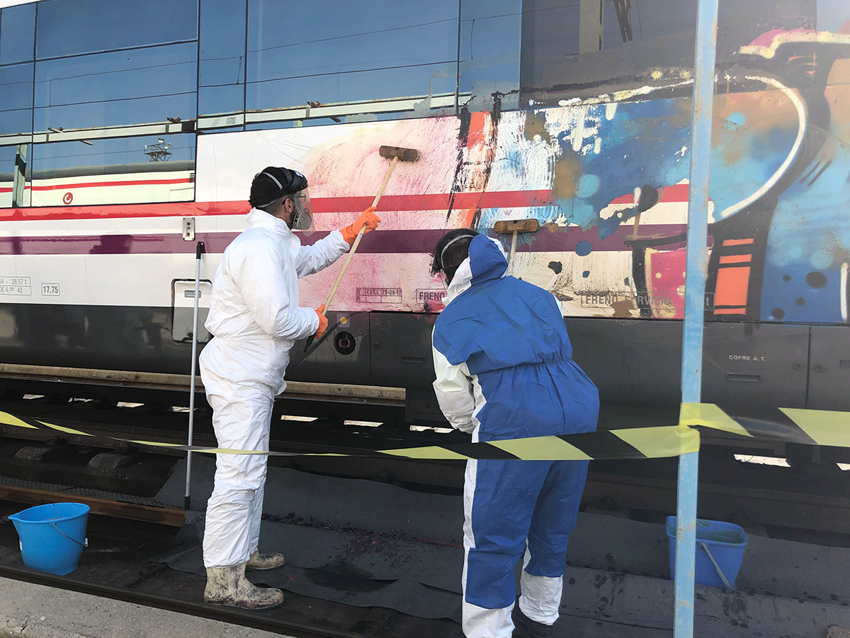 - La presencia de personal de seguridad de Renfe evita que las pintadas sean de mayor dimensión además de abortar el año pasado 729 incursiones grafiteras