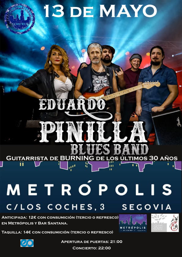 El sábado 13 de mayo en el bar Metrópolis (Los Coches, 3) actuará Eduardo Pinilla - Blues Band, el guitarrista de Burning los 30 últimos años.