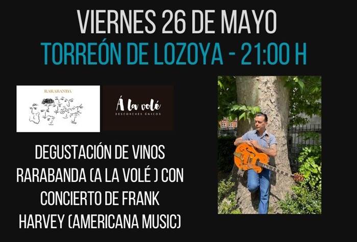 Este viernes, 26 de mayo, a las 21:00 horas (con entrada por la Calle Grabador Espinosa, nº 6), el Jardín del Torreón de Lozoya acogerá la actuación de Frank Harvey y la degustación de vinos Rarabanda, a cargo de A la volé.