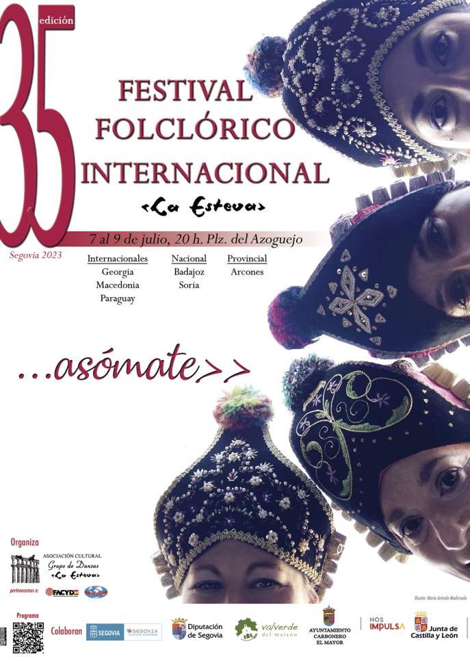 La 35 edición del festival folclórico “La Esteva” dará comienzo el viernes 7 de julio de 2023, a las 20:00 h en la Plaza del Azoguejo, con las actuaciones de los anfitriones, La Esteva, y los tres grupos extranjeros, Georgia, Macedonia y Paraguay y el grupo español de San Vicente de Alcántara (Badajoz).