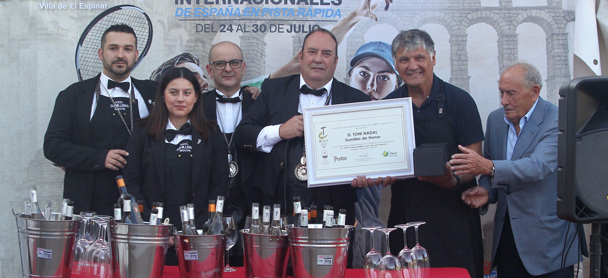 Ante más de un centenar de personas, la velada daba comienzo con las palabras de Pablo Martín, presidente de las asociaciones de sumilleres de Castilla y León y presidente nacional, quien tras un emotivo recuerdo al fallecido presidente del torneo D. Pedro Muñoz, invitaba a Toni Nadal a unirse a la tribuna para ser nombrado Sumiller de Honor.