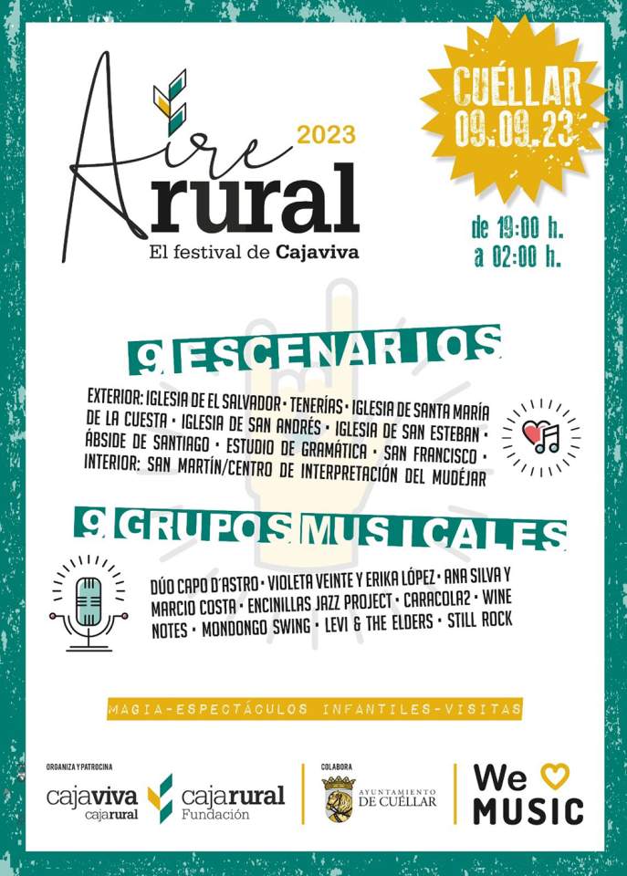 El 9 de septiembre, Cuéllar se llenará de cultura en la calle con la llegada de Aire Rural, el festival de Cajaviva Caja Rural.