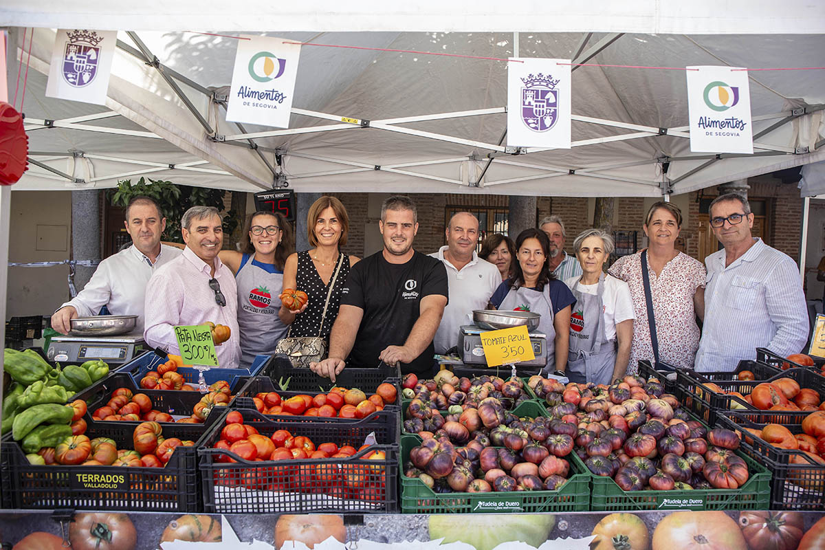 Con una temperatura bastante más acogedora que la de la última Feria del Tomate de Martín Muñoz de las Posadas, la quinta edición de este evento quedaba esta mañana inaugurada por, entre otras autoridades, la vicepresidenta de la Diputación y diputada del Área de Promoción Provincial y Desarrollo Rural Sostenible, Magdalena Rodríguez, el alcalde de la localidad y también diputado provincial, José Antonio García, y el delegado Territorial en Segovia de la Junta de Castilla y León, José Luis Sanz Merino, quien sorprendía a los visitantes al municipio al recibir, instantes más tarde, el Tomate de Honor de la Feria recitando la ‘Oda al Tomate’ de Pablo Neruda.