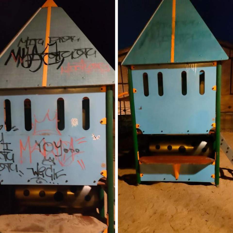 Desde mediados del pasado mes de junio se han eliminado cerca de un centenar de pintadas de fachadas de viviendas, muros, columpios y señales, entre otros lugares. El mes de mayor actividad ha sido septiembre, en donde prácticamente se ha limpiado una diariamente.