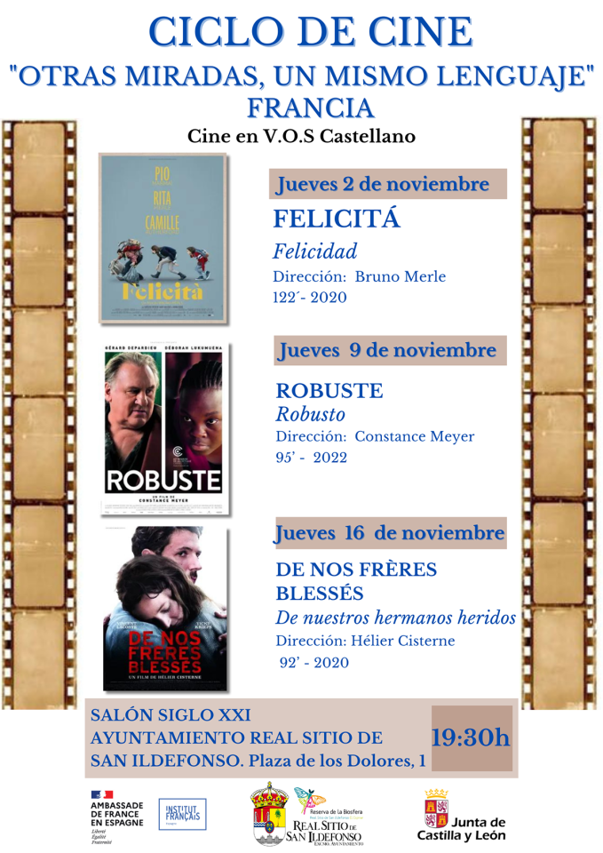 La Consejería de Cultura y Turismo de la Junta de Castilla y León, en colaboración con la Embajada de Francia, el Institut Français España y el Ayuntamiento del Real Sitio de San Ildefonso, han programado en el municipio un ciclo de cine francés en versión original y subtitulado.