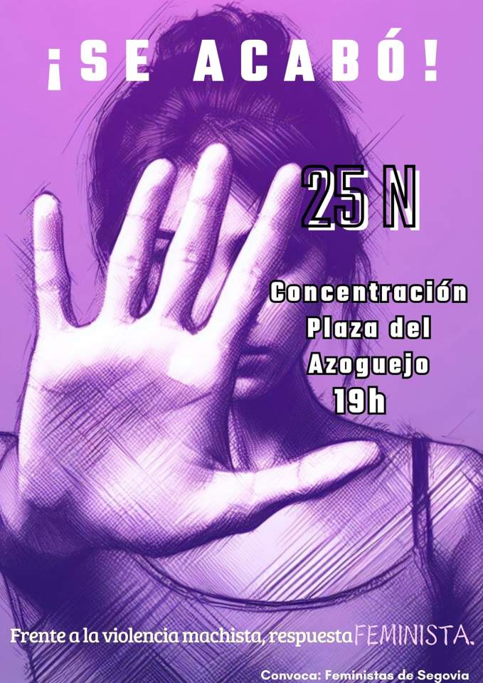 Este año, desde los Grupos Feministas de Segovia, hemos decidido manifestar nuestro rechazo concentrándonos el día 25 a las 19 horas en la Plaza del Azoguejo, allí tendrá lugar una performance, en donde se expresa en toda su crudeza las distintas maneras de asesinar a una mujer. Queremos mostrar con determinación feminista, nuestro pleno rechazo a cualquier tipo de violencia hacia las mujeres peleando por todo lo que es nuestro.