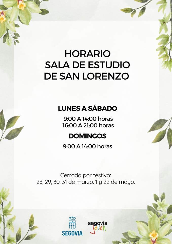 En concreto, el horario queda establecido en esta sala de estudio de la siguiente manera: de lunes a sábado, estará abierta de 9.00 a 14.00h y de 16.00 a 21.00h y los domingos de 9.00 a 14.00h.