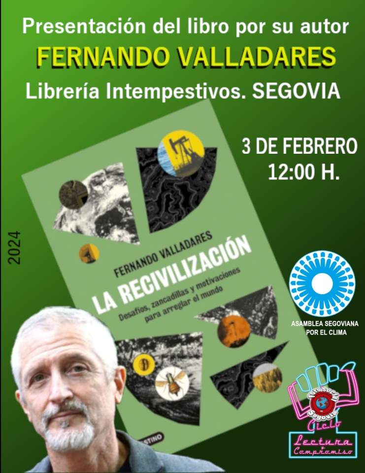 Fernando Valladares presenta en Segovia su último libro: 'La Recivilización. Desafíos, zancadillas y motivaciones para arreglar el mundo' organiza la Asamblea Segoviana por el clima dentro del ciclo lectura y compromiso del Foro Social, el acto tendrá lugar el sábado 3 de febrero a las 12 horas en la librería Intempestivos.